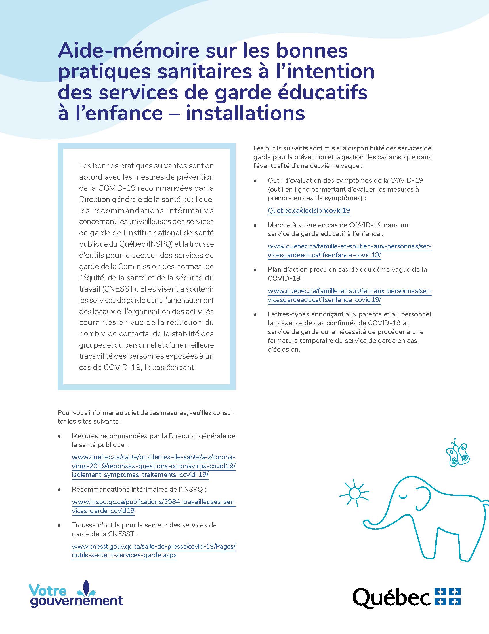Document du Gouvernement du Québec à l'intention des services de garde éducatifs à l'enfance - installation.