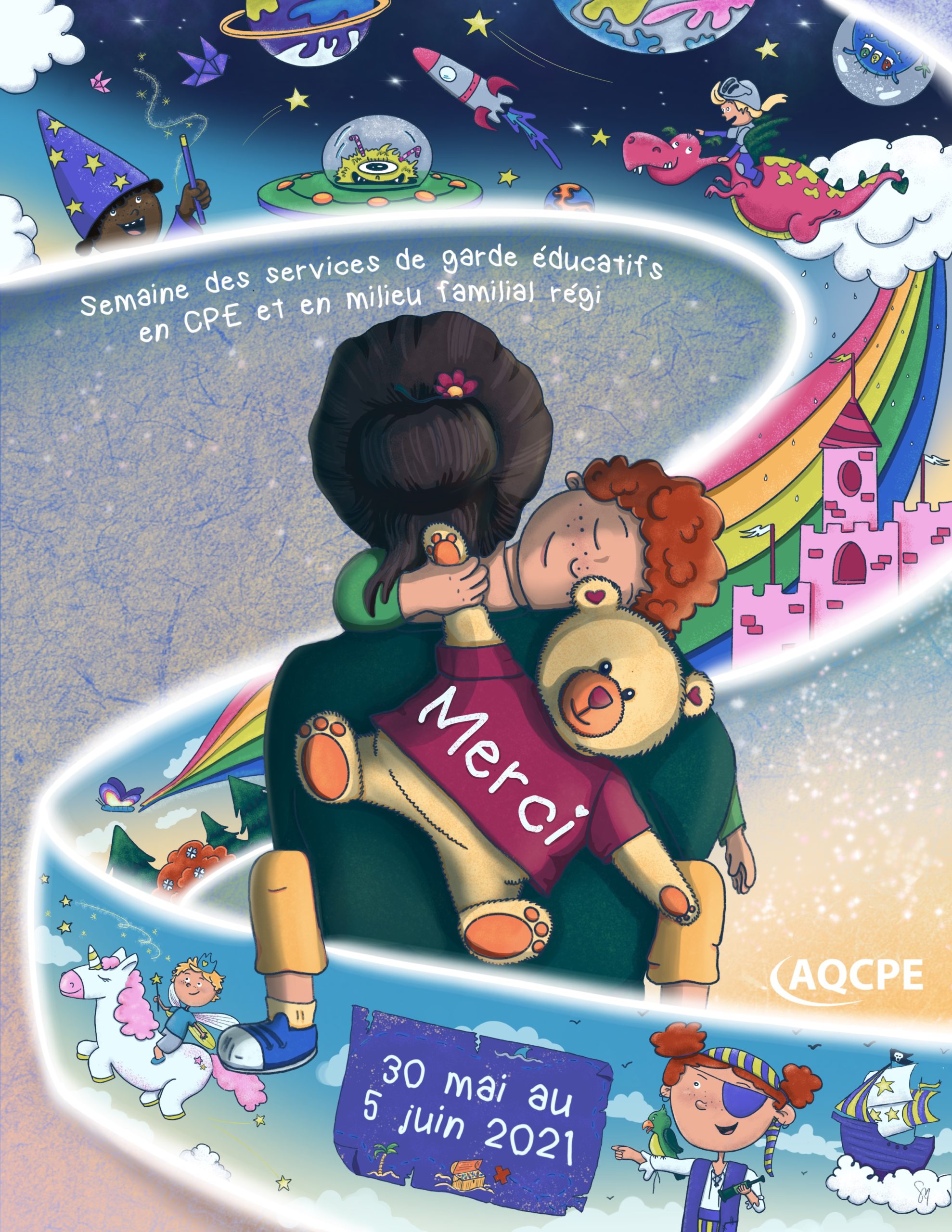 Affiche pour la semaine des services de garde éducatifs en CPE et en milieu familial régi du 30 mai au 5 juin 2021